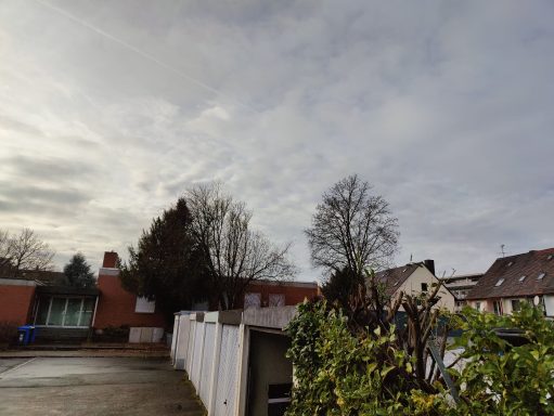 Der Bereich in dem die Sonne auf das Dach trifft wird durch zwei Bäume begrenzt, wie in den Bildern zu sehen.